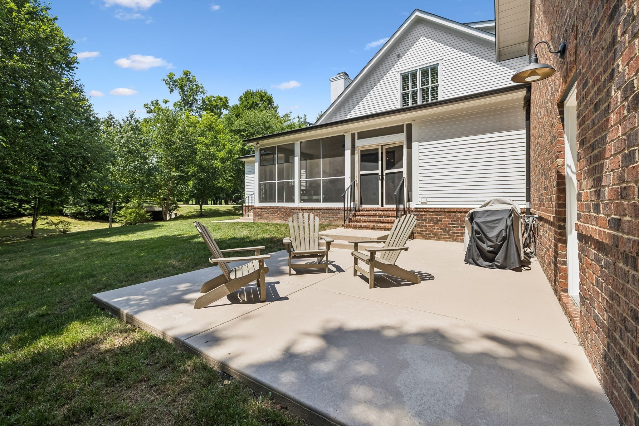 Welcome to this beautifully updated home on a spacious .43 acre corner lot in the heart of Westhaven. Tucked along a tree-lined backdrop with green space offering rare backyard privacy, this well-maintained property blends timeless charm with thoughtful upgrades throughout. Over the past three years, updates include new hardwood flooring, fresh interior and exterior paint, updated lighting and plumbing fixtures, refreshed cabinet hardware, plantation shutters, custom built-ins, and woodwork through out the home. A newly added screened-in porch functions as a three-season room, with expansive doors that open to seamlessly connect the family room to the outdoors - ideal for everyday living and entertaining. The two-car garage features durable epoxy flooring and convenient side-street parking, along with a separate parking pad on the left side of the home, perfect for a golf cart or third vehicle. Additional features include a new roof installed less than a year ago, a separate staircase to the bonus room above the garage, a friends' side entry, a functional laundry room and a welcoming front porch. The kitchen sink window overlooks a peaceful side yard and a blooming seasonal tree, offering a scenic touch to daily life. This John Montgomery built home combines space, functionality, and elegance - all within one of Franklin's most desirable neighborhoods.